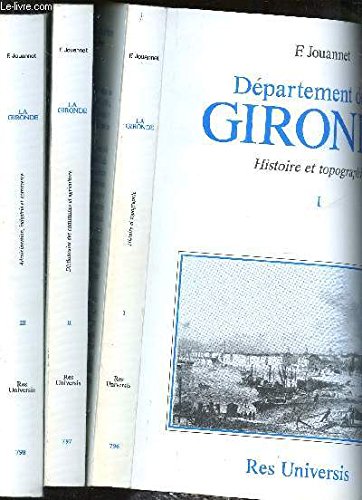 R320041728. DEPARTEMENT DE LA GIRONDE - EN TROIS VOLUMES / TOME I : HISTOIRE ET TOPOGRAPHIE + TOME II : DICTIONNAIRE DES COMMUNES ET AGRICULTURE + TOME III : ADMINISTRATION, INDUSTRIE ET COMMERCE.. 1992. In-4. Broché. Etat d'usage, Couv. convenable, Dos satisfaisant, Intérieur frais. 429 + 411 + 458 pages.. . . . Classification Dewey : 908.447-Régionalisme : Aquitaine